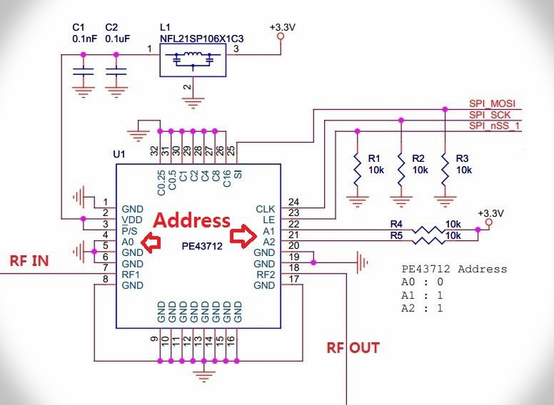 아래는 PE43712와 ATmega328P-AU 회로도이다.