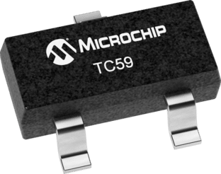 TC59는 배터리로 동작하는 시스템을 위해 특별히 설계된 저전압 강하, 네거티브 출력 전압 레귤레이터입니다. 풀 CMOS 구조는 바이폴라 LDO의 일반적인 접지 전류 낭비를 제거합니다. 이러한 감소된 공급 전류는 특히 TC59가 드롭 아웃으로 동작 할 때 배터리 수명을 크게 연장시킵니다. 기타 TC59의 주요 기능으로는 낮은 소비 전류 (일반적으로 3.0μA)와 낮은 드롭 아웃 동작 (일반적으로 50mA에서 120mV)이 있습니다. TC59는 초소형 3핀 SOT-23A 패키지로 제공됩니다.