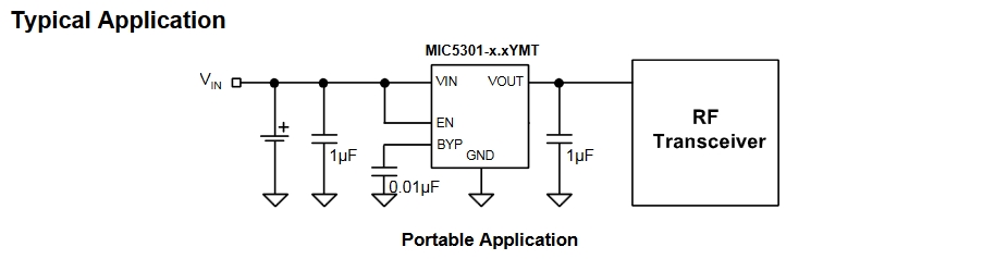 MIC5301은 고성능 단일 출력 초저 LDO(ULDO) 레귤레이터로 총 출력 노이즈가 낮습니다. MIC5301은 150mA 출력 전류를 소싱 할 수 있으며 높은 PSRR 및 낮은 출력 잡음을 제공하므로 RF 애플리케이션에 이상적인 솔루션입니다.
