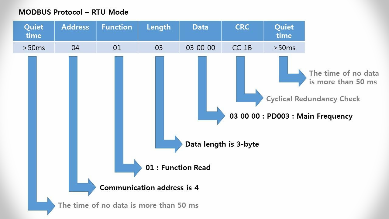 TX: 04 01 03 04 00 00 7D DA --- PD004 : Base Frequency