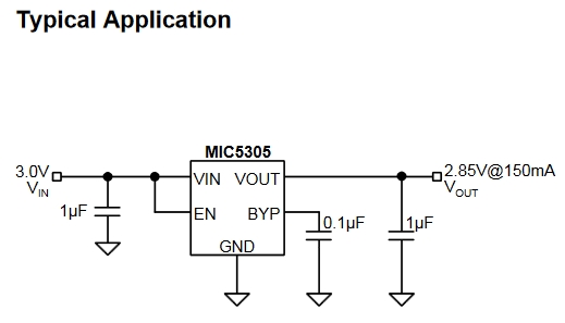 MIC5305는 150mA의 고성능 LDO 레귤레이터로, 낮은 접지 전류를 소비하면서도 매우 높은 PSRR과 매우 낮은 노이즈를 제공합니다.