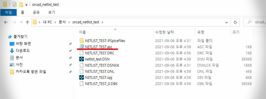 참고로 OrCAD 16.3 등 하위 버전은 네트리스트 파일 확장자가 *.asc가 아닌 *.net로 만들어진다.