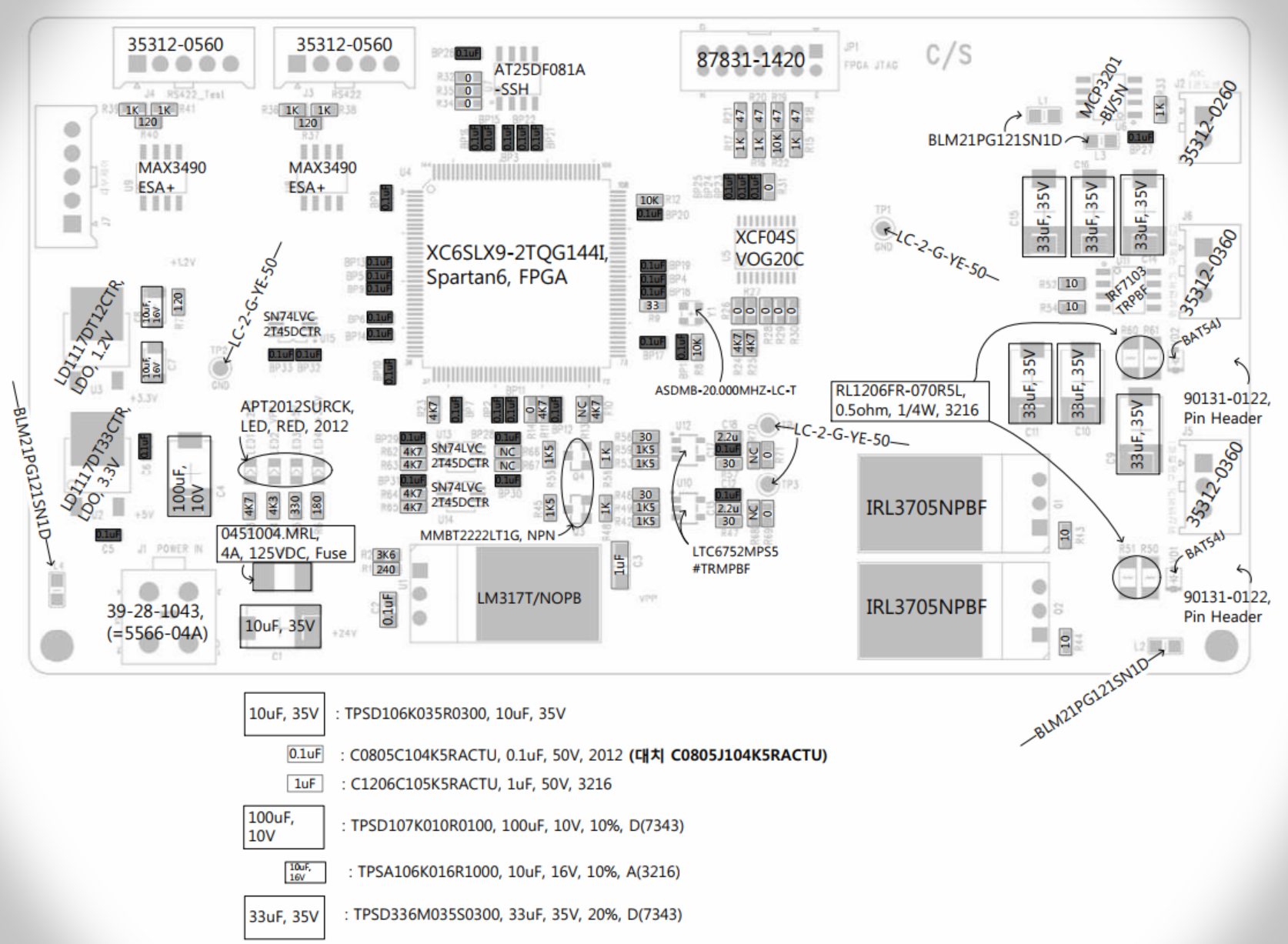 PCB top 또는 bottom 면의 패드와 실크, ref 번호만 나오도록 이미지 파일을 만들고, 그 위에 텍스트로 조립할 부품명을 작성한다. 그리고 프린터로 확대 출력한다. 이렇게 해서 보면 납떔 작업할 때 유용하다. 사실 이 작업은 하루이틀 정도 시간이 걸리지만 한 번 작성해두면 납땜시에 좀 더 쉽게 확인이 가능하다. 이렇게 작성하는 방법은 첫 직장에서 하드웨어 담당자분께 배운 것이다.