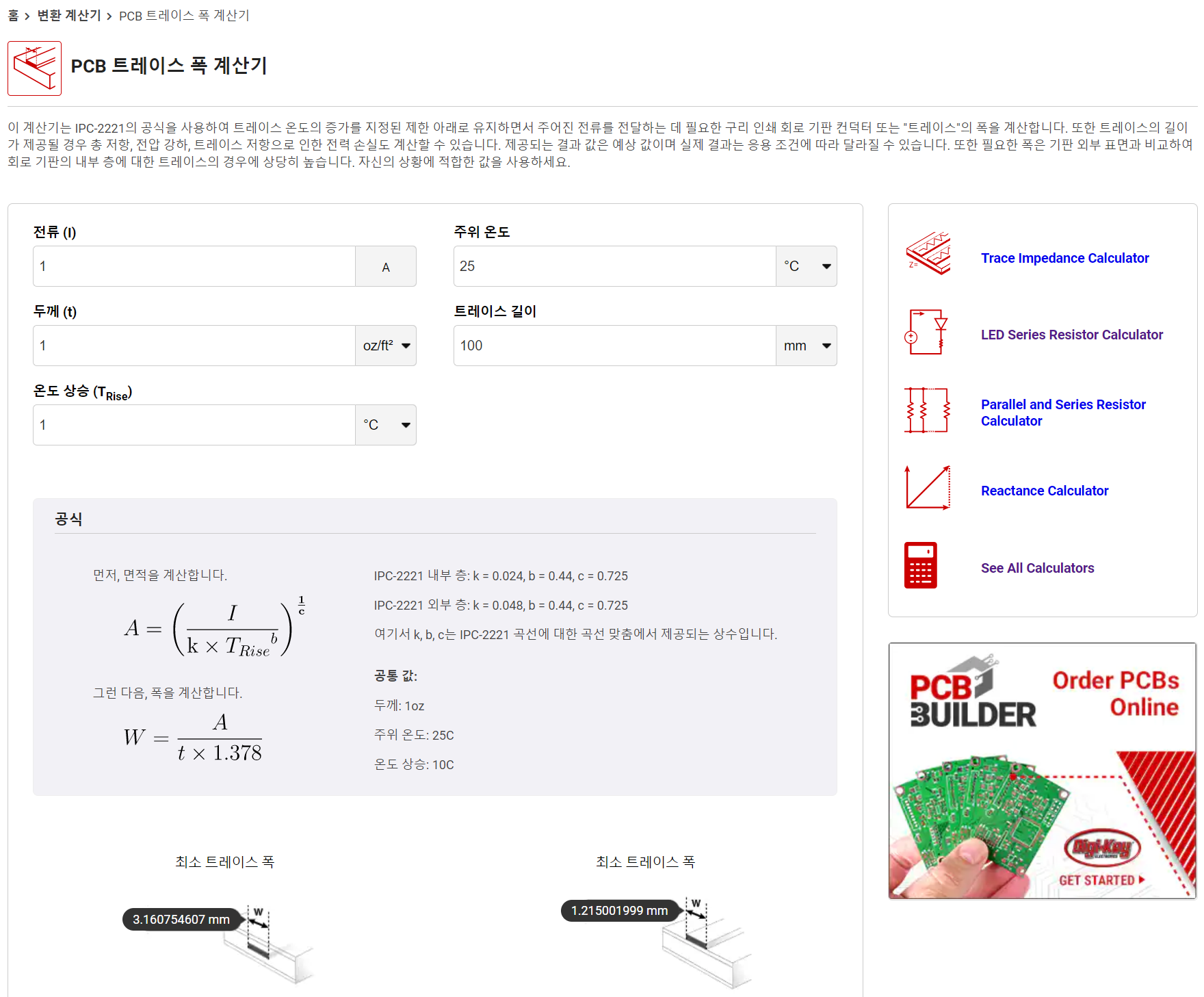 링크 : PCB 트레이스 폭 변환 계산기 | DigiKey