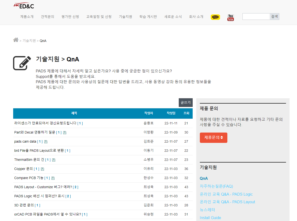 PADS 공급 공식업체 이므로 제품문의, 견적문의, 평가판 시청, 교육신청, 기술지원 등 서비스를 받을 수 있다.