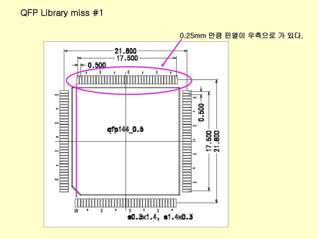 부품 라이브러리는 정확히 작성해야 한다. 위와 같이 위치가 맞지 않으면 이 Footprint 위에 조립할 부품을 제대로 납땜할 수 없다.
