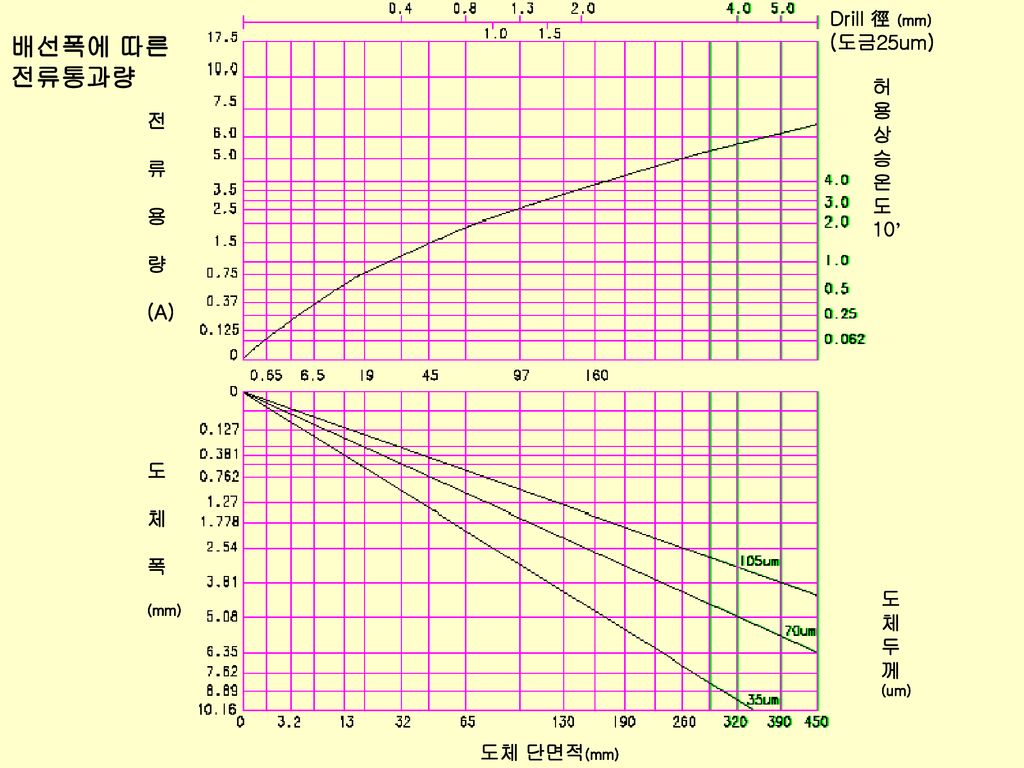 배선폭은 회로에 흐르는 전류가 클 수록 두꺼워 진다. MCU의 일반 디지털 신호선은 10mA 정도로 적게 흐르기 때문에 위 표의 최소폭인 0.14mm 로도 설계 가능하다.