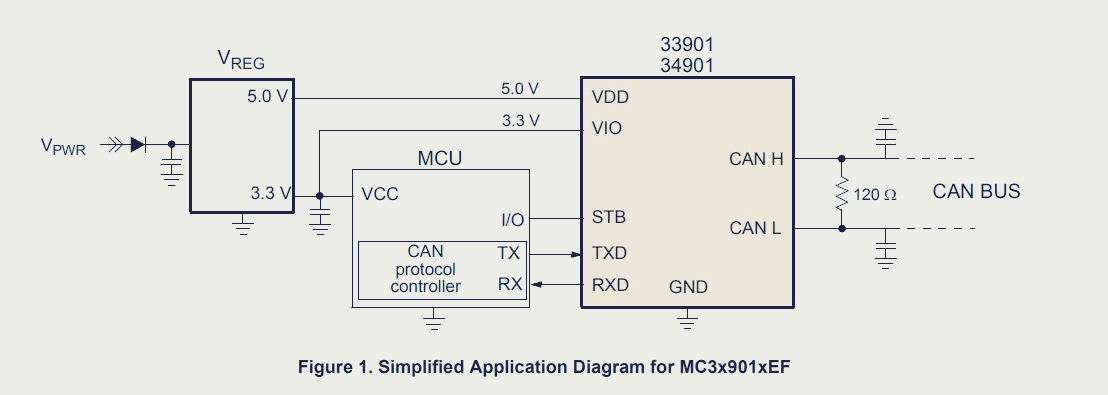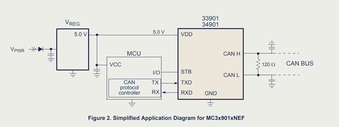 MC33901/34901은 SMARTMOS 고속(최대 1.0Mbits/s) CAN 트랜시버로 MCU의 CAN 프로토콜 컨트롤러와 물리적 이중 와이어 CAN 버스 간의 물리적 인터페이스를 제공합니다. 이 제품은 시장 표준 핀아웃이 있는 8핀 SOIC에 패키징되어 있으며 외부 필터 부품 없이도 뛰어난 EMC 및 ESD 성능을 제공합니다.