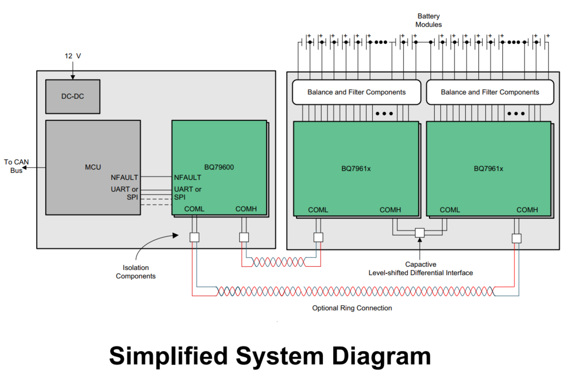 • Isolated differential daisy chain communication with optional ring architecture