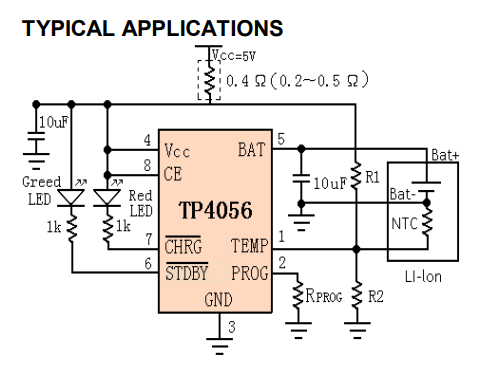TP4056은 단일 셀 리튬 이온 배터리를 위한 완벽한 정전류/정전압 선형 충전기입니다. SOP 패키지와 적은 외부 부품 수 덕분에 TP4056은 휴대용 애플리케이션에 이상적입니다. 또한 TP4056은 USB 및 벽면 어댑터 내에서 작동할 수 있습니다.