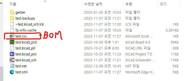 엑셀 프로그램으로 열어보면 그림과 같이 BOM이 작성된 것을 확인할 수 있다.