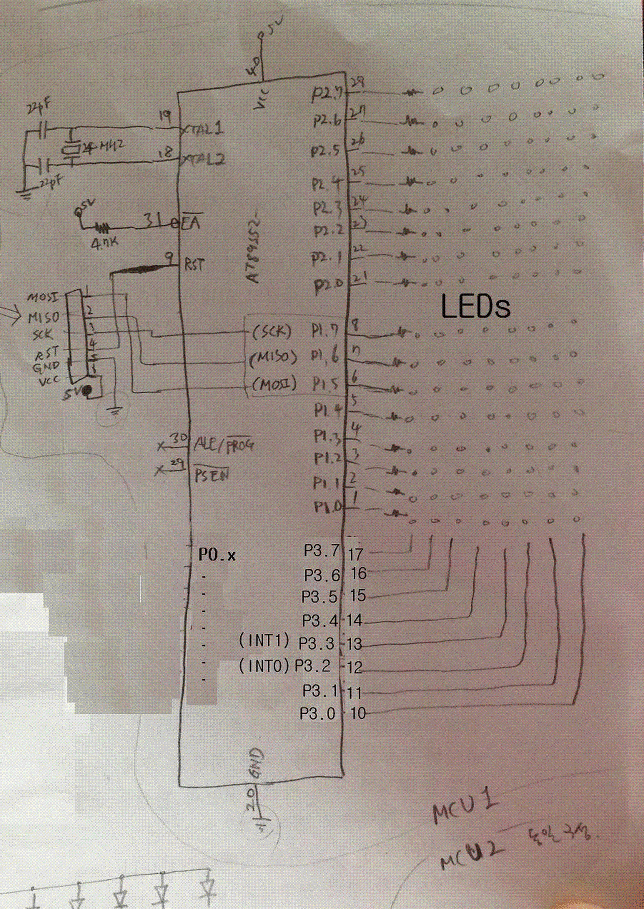 MCU 하나로 16x16 LED를 컨트롤 하려면 회로가 좀 더 복잡해지고 그걸 제어할 능력이 아직 안되서