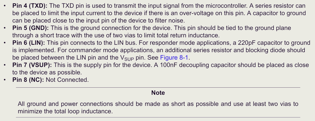 • Compliant with LIN 2.0, LIN 2.1, LIN 2.2, LIN 2.2 A and ISO/DIS 17987–4 electrical physical layer (EPL) specification