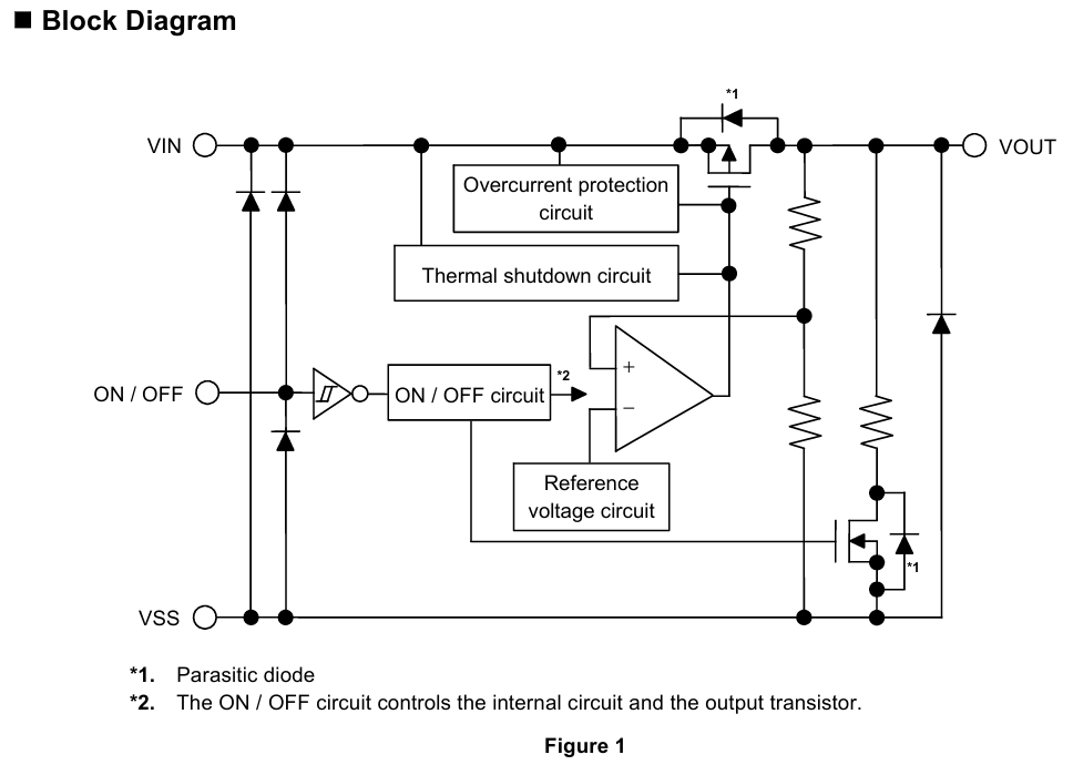 또한 출력 트랜지스터의 과전류를 제한하는 내장형 과전류 보호 회로와 열을 제한하는 내장형 열 셧다운 회로가 포함되어 있습니다.