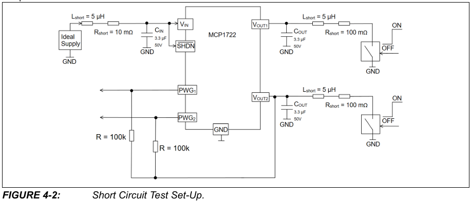 MCP1722에는 두 출력에 대한 Power Good 표시기(PWG1 및 PWG2의 두 핀)와 부품을 4μA의 낮은 전류 소비 상태로 만드는 셧다운 기능(단일 SHDN 핀)이 함께 제공됩니다.