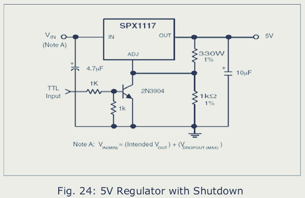The SPX1117 features very low quiescent current and a low dropout voltage of 1.1V at a full load. As output current decreases, quiescent current flows into the load, increasing efficiency. SPX1117 is available in adjustable or fixed 1.5V, 1.8V, 2.5V, 3.3V, and 5V output voltages.