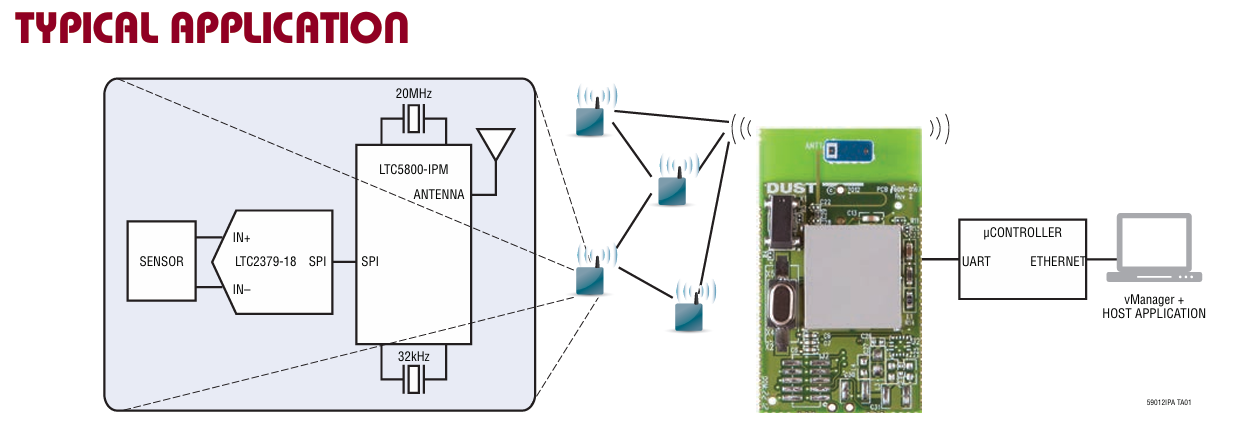 SmartMesh IP™ wireless sensor networks are self-managing, low power internet protocol (IP) networks built from wireless nodes called motes. The LTP™5901-IPA/LTP590-IPA is the IP Access Point Mote™ (AP Mote™) in the Eterna®* family of IEEE 802.15.4e system-on-chip (SoC) solutions, featuring a highly integrated, low power radio design by Dust Networks® as well as an ARM Cortex-M3 32-bit microprocessor running Dust’s embedded SmartMesh IP networking software.SmartMesh IP software provided with the LTP5901/LTP5902-IPA is a fully tested and validated binary image.